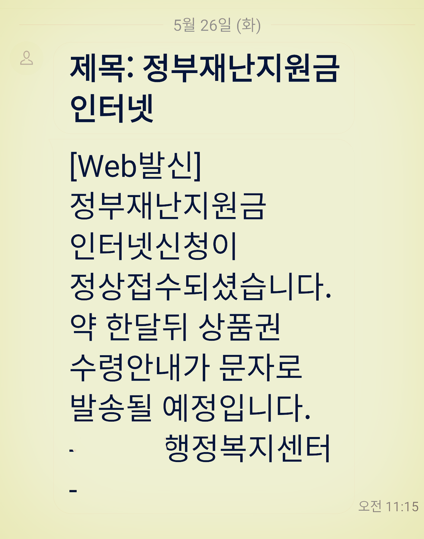 정부 재난 지원금 종이상품권은 한달 뒤에 수령하라고
