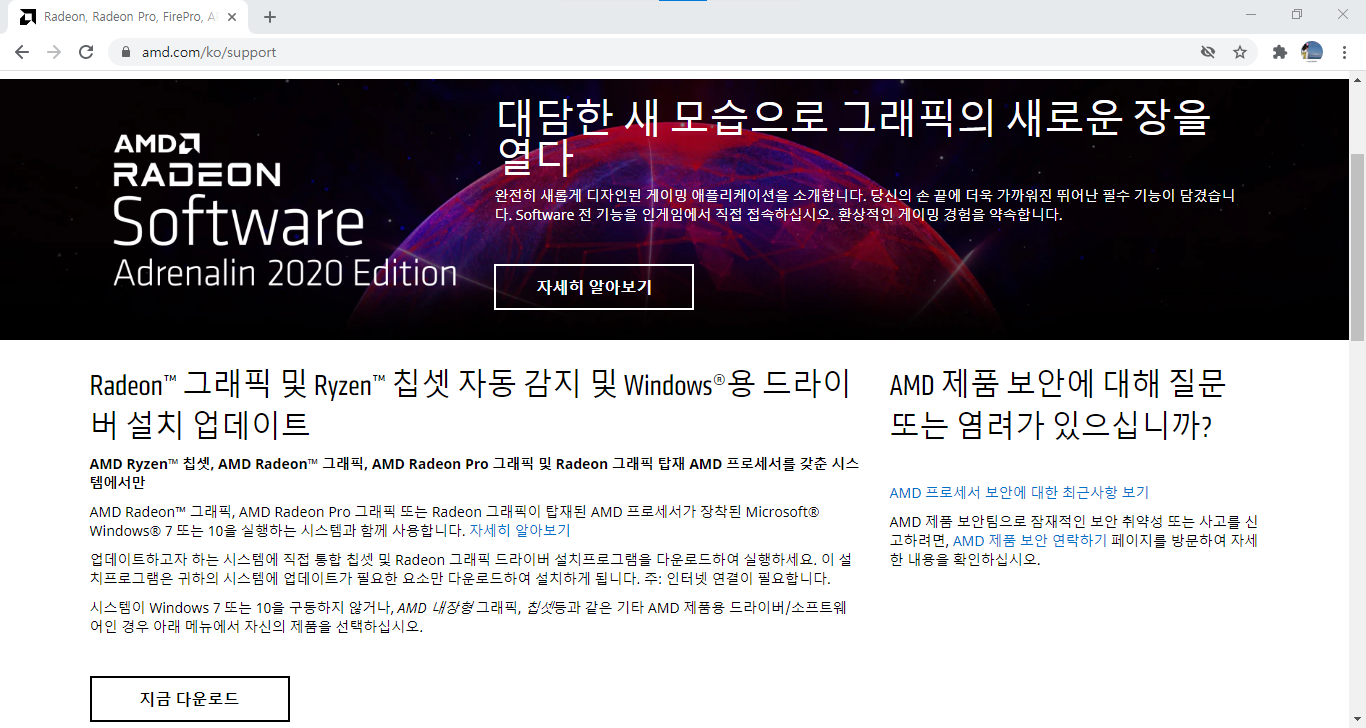 AMD.COM에 접속해서 전용 드라이브를 다운 받아서 설치를 해줍니다.