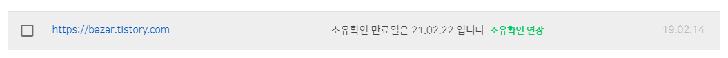 먼저는 등록된 사이트 주소를 보시면 옆에 소유 확인 만료일이 친절하게 나와 있습니다. 그리고 네이버의 색깔로 링크가 걸린 문구가 보일 겁니다.