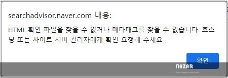 HTML 확인 파일을 찾을 수 없거나 메타태그를 찾을 수 없습니다. 호스팅 또는 사이트 서버 관리자에게 확인 요청해 주세요.