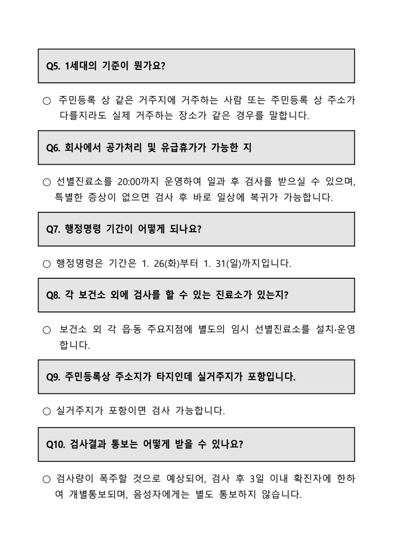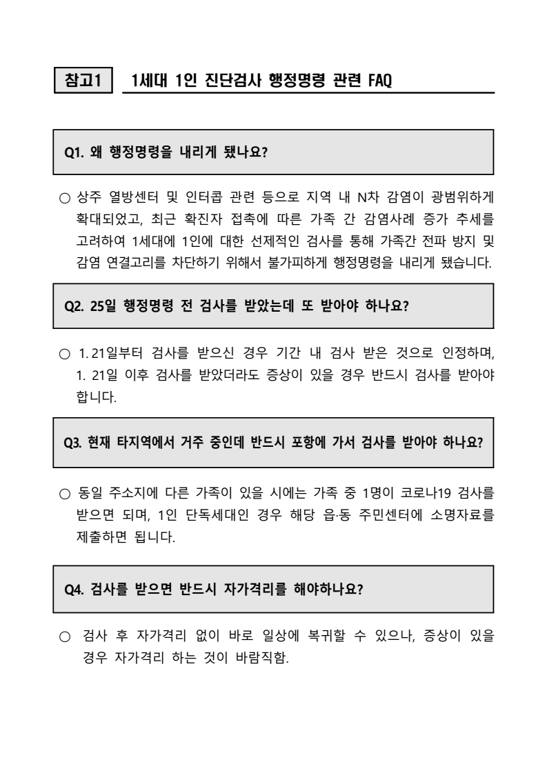포항시청 코로나 검사 행정명령 : 세대 1명 이상 코로나 19 진단검사