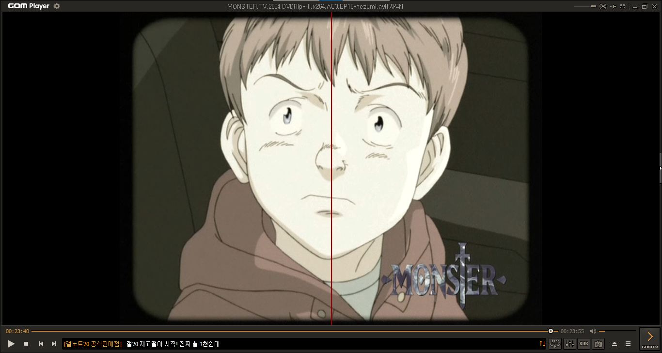 어느 날, 몬스터라는 일본 만화를 보려고 곰플레이어를 통해서 영상을 재생해 보니... 중앙에 세로로 빨간 색의 줄이 생겼습니다. 처음에는 모니터의 화면 분할 때문에 생긴 현상으로 알고 헤맸습니다.