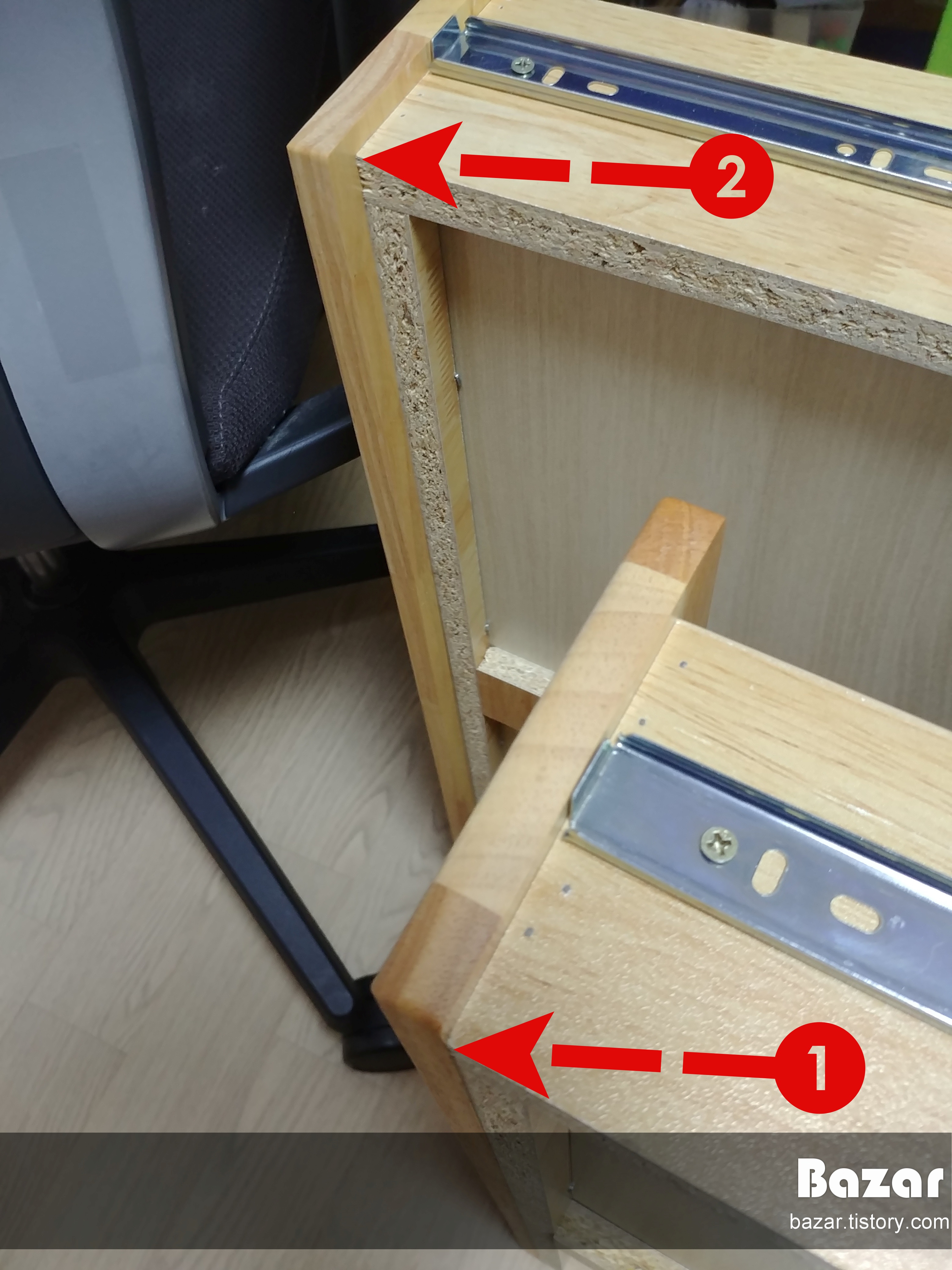 3. 수납 서랍의 아쉬운 마감