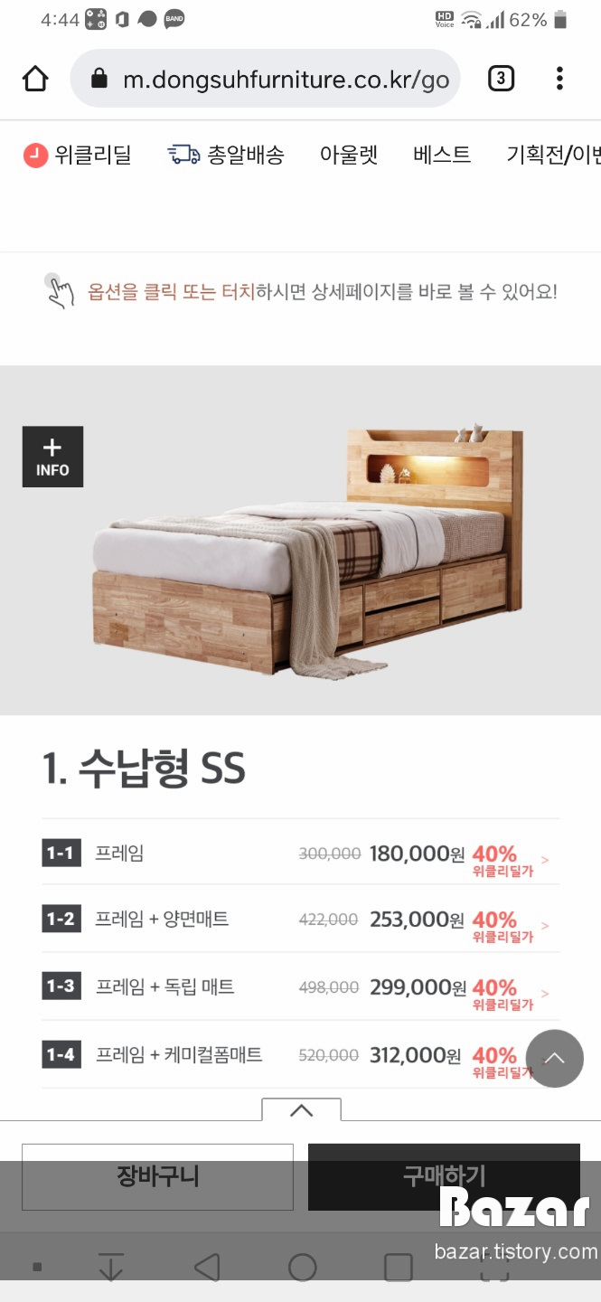 아들이 사용하도록 동서가구 커브 LED 고무나무 원목 침대 SS를 구매했습니다. 4단 수납공간이 있어 본인 옷들을 넣을 수 있고, 안쪽으로는 계절이 지난 옷들도 넣을 수 있기에 매트리스 포함해서 일찍이 결재를 완료했습니다.